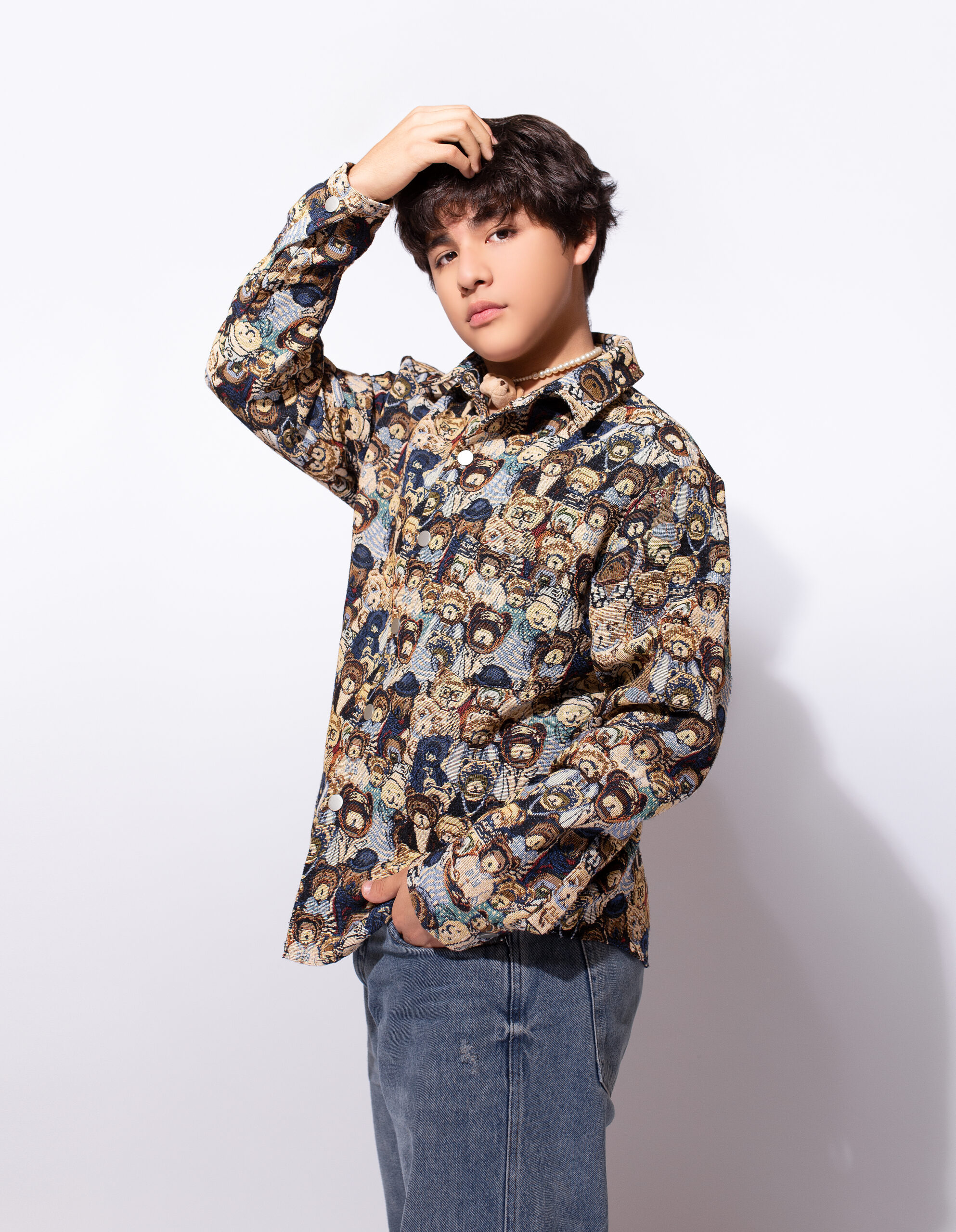Camisa de tela tejida con prints de osos. Esta tela importada es única, ya que combina calidad y diseño para dar vida a una prenda hermosa y súper combinable. Puede usarse abierta con una t-shirt por dentro o cerrada, como se muestra en la imagen. ¡Los boys de la casa amarán esta prenda!